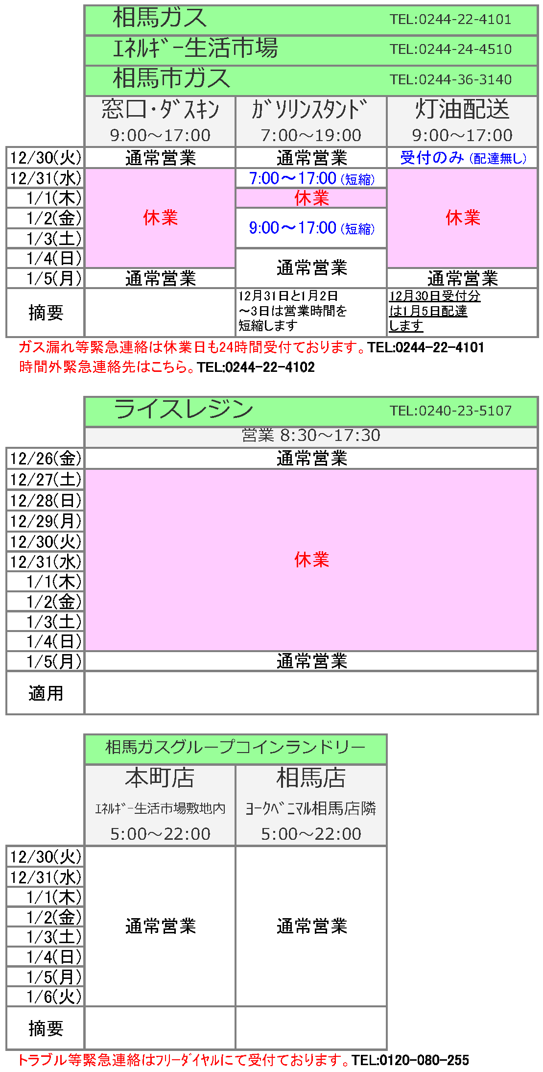 弊社グループでは、誠に勝手ながら下記の通り、年末年始の営業時間を